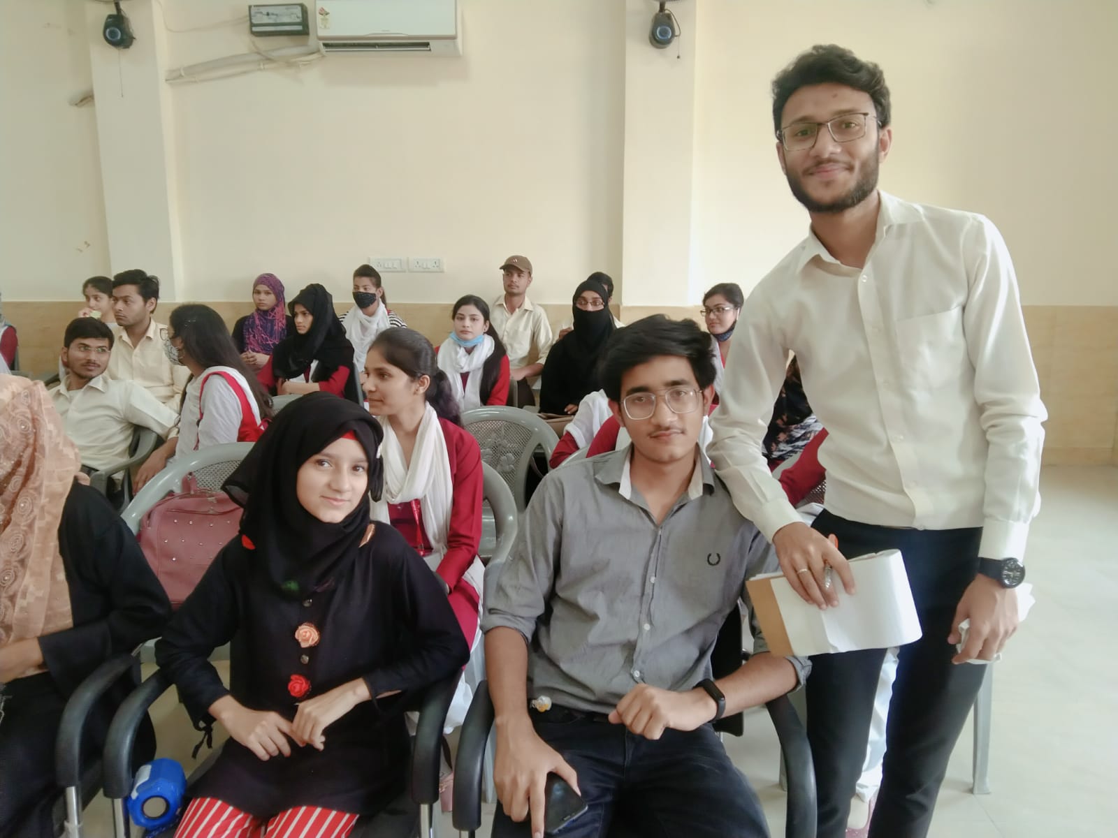 کالج کی ثقافتی تقریب کمیٹی کی ممبر ڈاکٹر ونی جین صاحبہ یوتھ فیسٹیول کے دیگر پروگرام میں مصروف تھیں اسکے باوجود بھی انہوں نے اپنی شمولیت اپنے وائس پیغام کے ذریعے بچوں تک پہنچائ اور اپنی غیر موجودگی کا احساس نہیں ہونے دیا – کافی تعداد میں طلباء و طالبات نے موضوع کی تائید اور مخالفت میں اپنے اپنے خیالات کا اظہار کیا – موضوع کی تائید میں عرشی، نشا پروین، عابدہ، الینا، ندا عائشہ، سمرن، الفیا اور مخالفت میں محمد حارث انصاری، محمد نوید، رافعہ، صوفیہ، عمرانہ، ثانیہ سیفی، بشری، شمع اور آفرین نے بہت ہی مؤثر انداز میں اپنے خیالات کو پیش کیا –